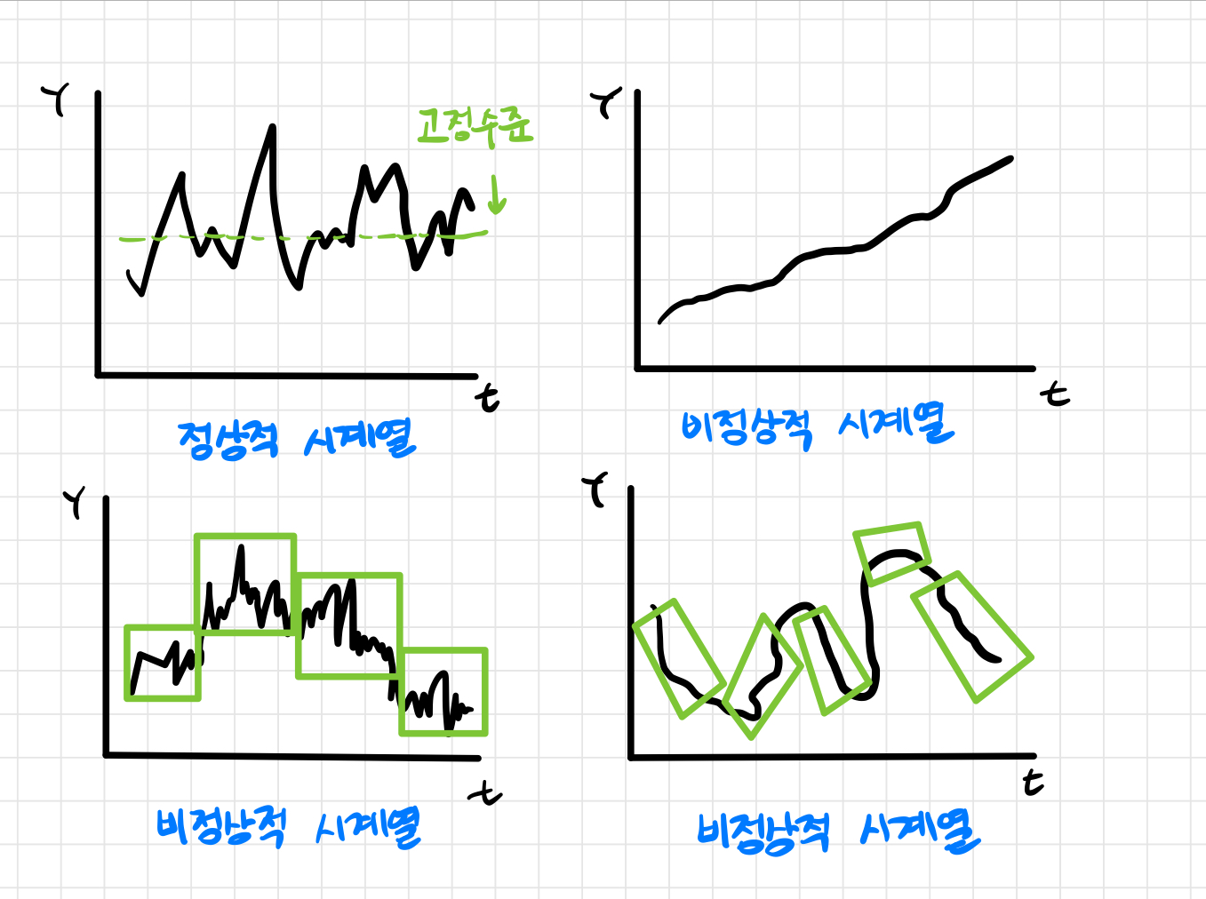 - 시계열자료는 크게 정상적(stationary) 시계열과 비정상적(non - stationary) 시계열로 구분됨