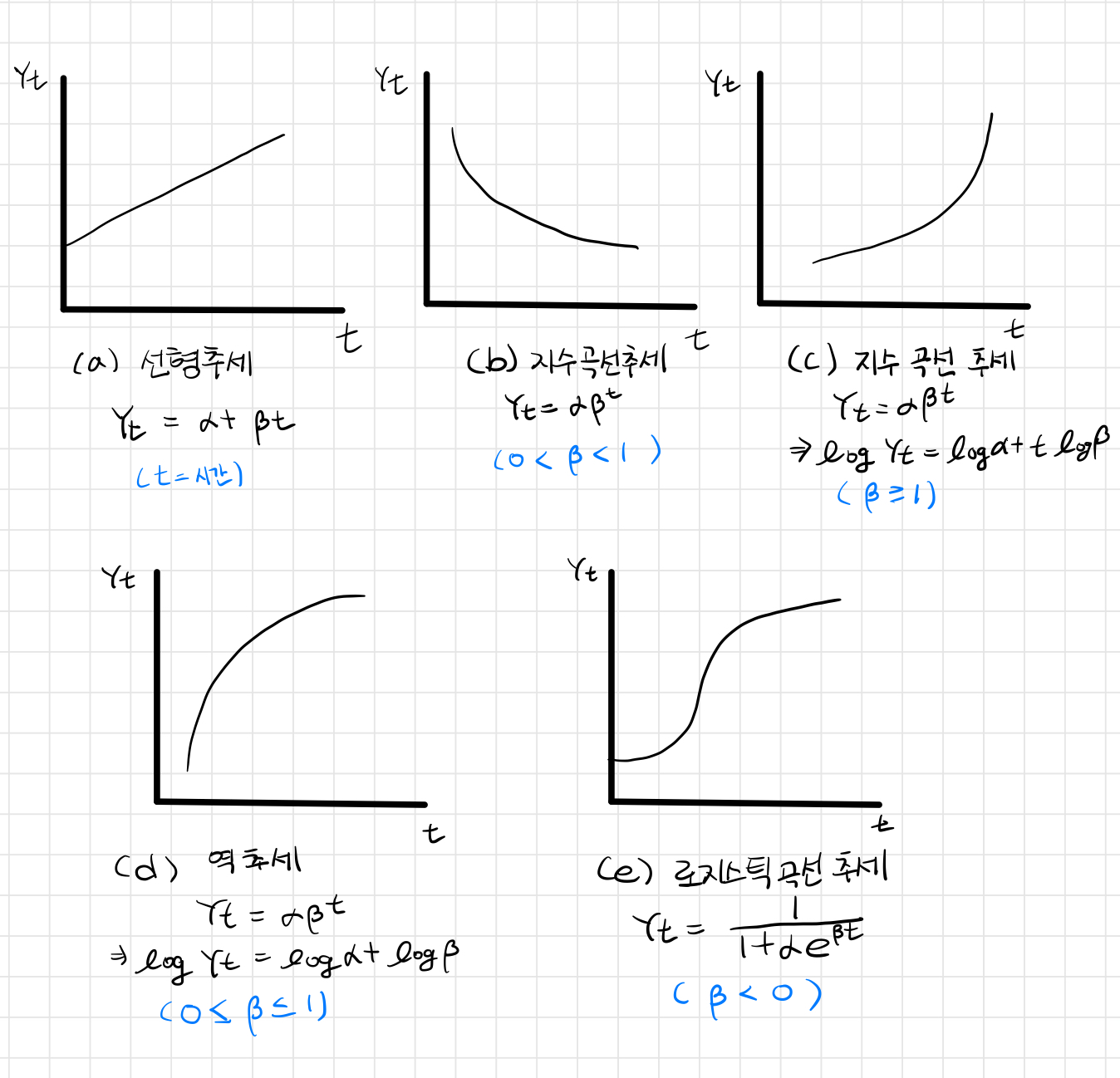 - 선형 추세 : 선형함수 : 시간의 변화에 따라 직선으로 증가하거나 감소하는 추세