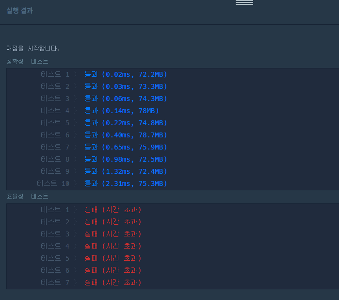 - 정확성 테스트 케이스 제한 사항이 다음과 같기 때문에 브루트 포스로만 해결해도 간단하게 통과는 가능하다.