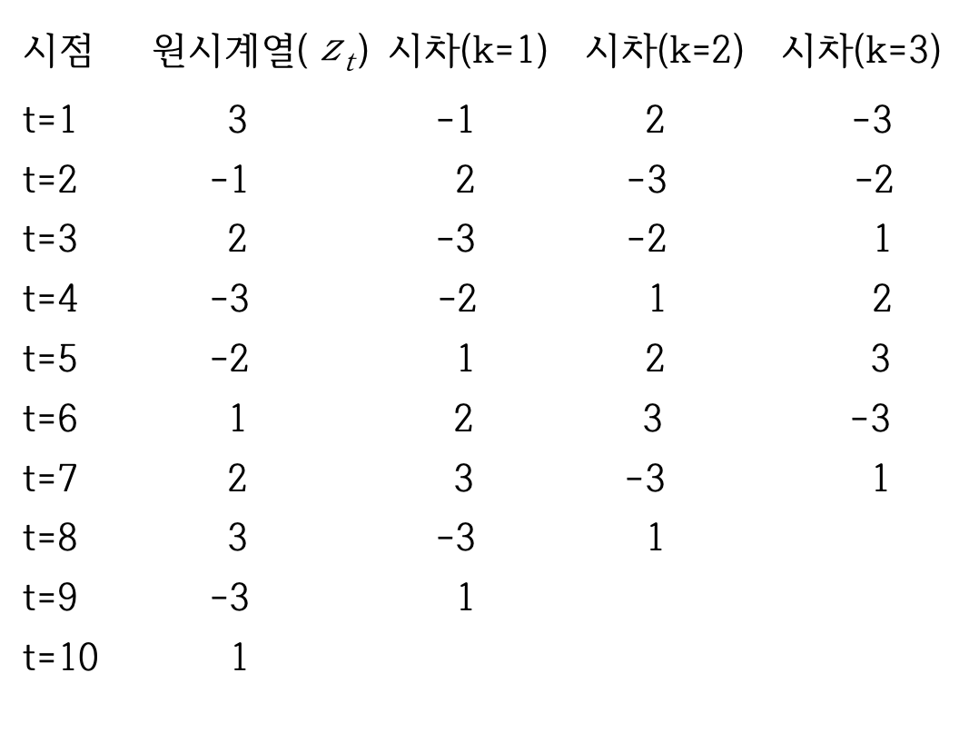 - 시차가 k인 편자기상관함수는 평균이 0인 정상시계열 {z(t)}에서