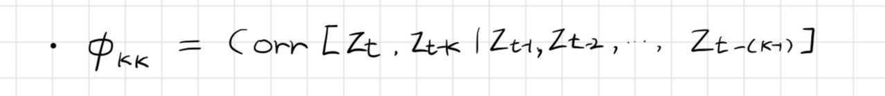 - 시차가 k인 편자기상관함수는 평균이 0인 정상시계열 {z(t)}에서