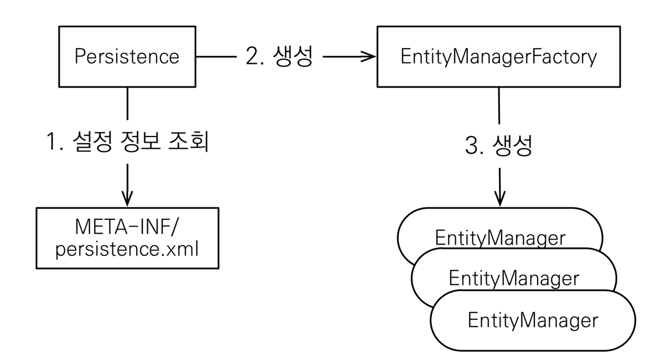 - EntityManagerFactory에 의해서 EntityManager가 생성되고 관리된다.