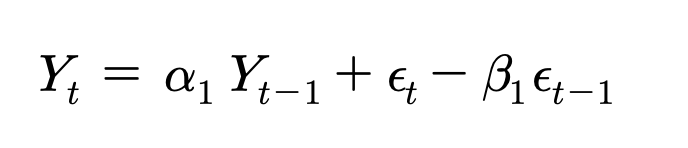 -가장 단순한 ARMA모형은 바로 이전 시점의 Y(t-1)과 오차만을 모형에 포함시켜 다음과 같이 ARMA(1, 1)를 표현한다.