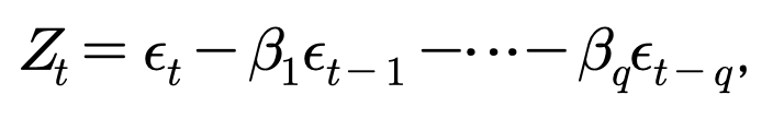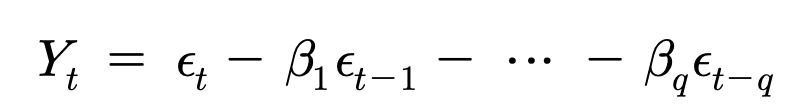 으로 표현되는데 이 식을 q차 이동평균모형이라고 부르며 MA(q)로 나타낸다