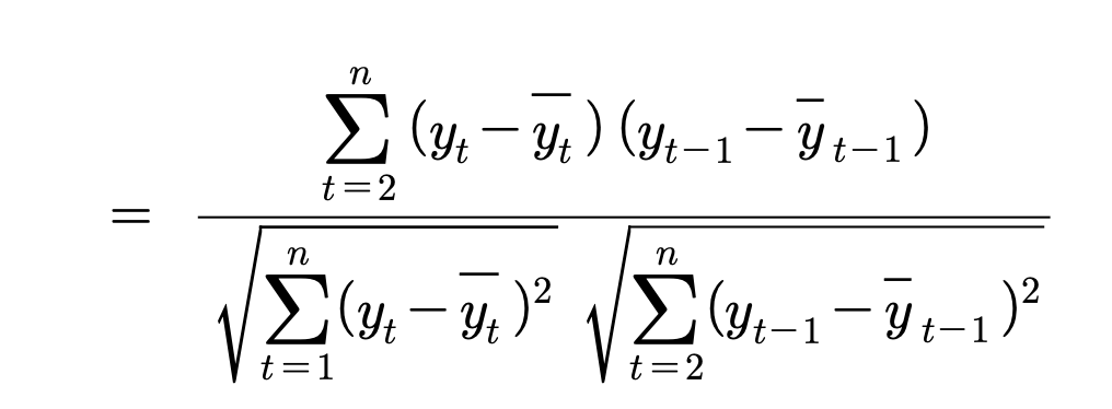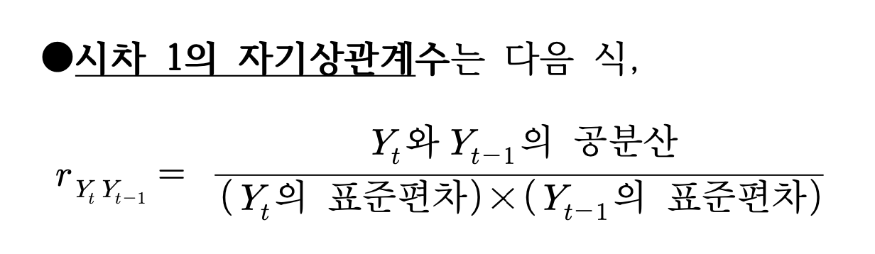 - 시차 1의 자기상관계수는 다음식,