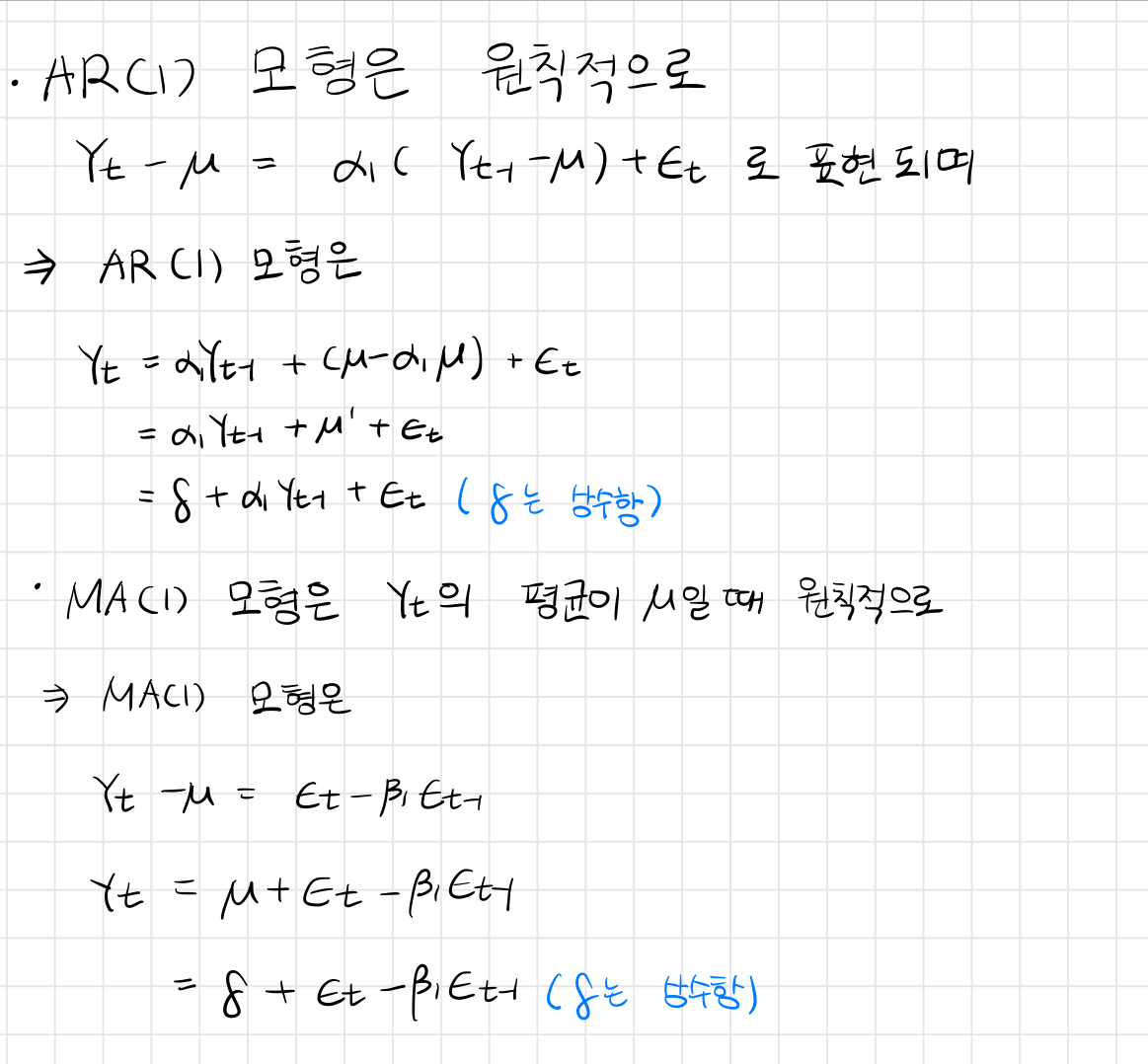 - 시계열자료(Y(t))의 평균(상수항)을 나타내는 방법