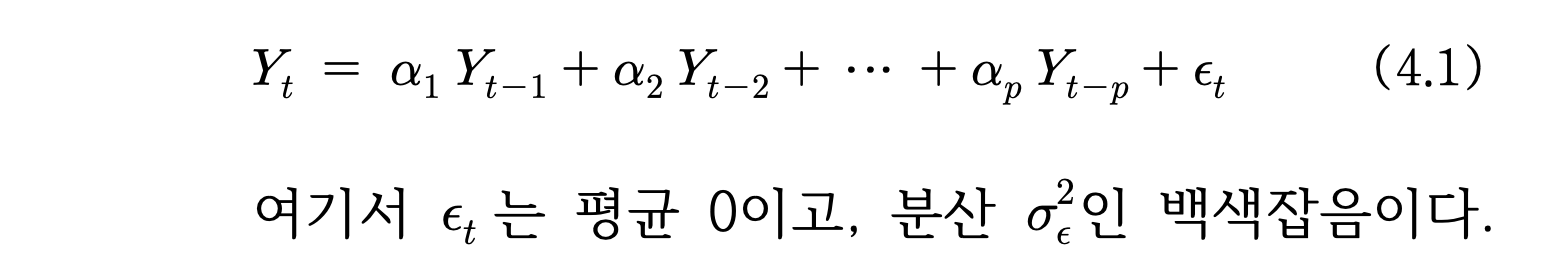 시계열의 모형에서 현시점의 상태를 과거시점의 상태들, 즉 과거의 자기자신의 관측값과 현시점의 오차의 함수로 나타낼 수 있다면