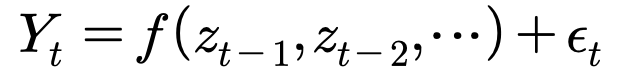 함수 f를 회귀함수라고 하고, 이 모형을 자기회귀모형(autoregressive model)이 된다.