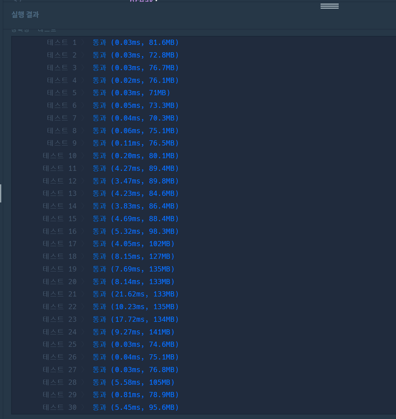 - 실제 카카오 문제 풀면서 접근했던 방식인데 그 때는 두 개의 케이스에서 자꾸 통과를 못 했다..