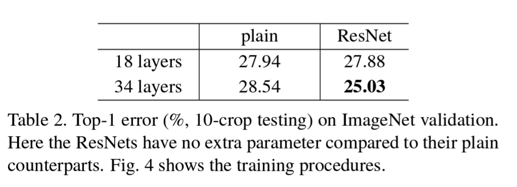 그러나 ResNet의 shortcut connection은 parameter가 전혀 추가되지 않으며, 지속적으로 residual function 학습이 가능함