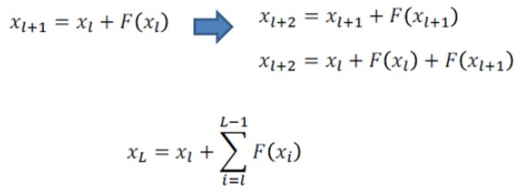 곱셈 연산에서 덧셈 연산으로 변형되어, 몇 개의 layer를 건너뛰는 효과가 있음