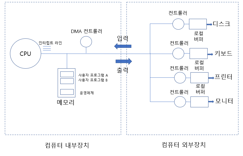 - 따라서 일반적으로 프로그램이 입출력을 수행 중인 경우 CPU를 다른 프로그램에게 이양해 CPU가 계속 쉬지 않고 일할 수 있도록 관리한다.