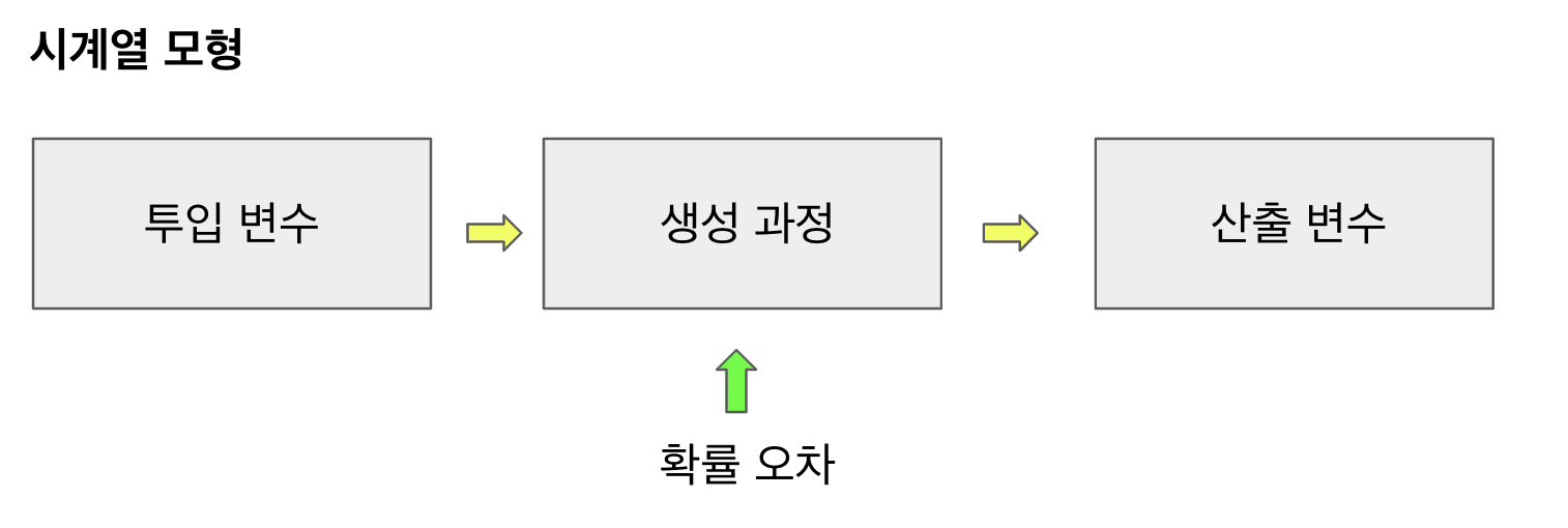 - 미래의 예측 값은 예측 대상이 되고 있는 변수의 과거 자료나 오차에만 의존된다고 가정하는 모델