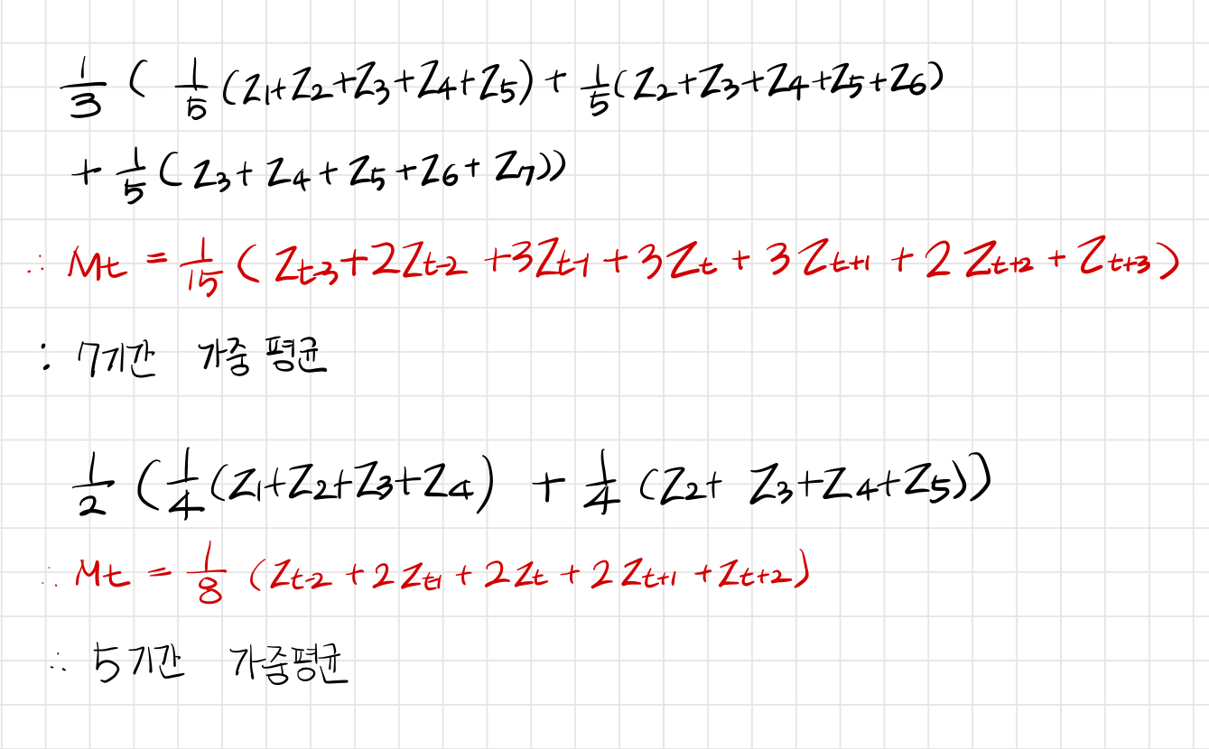 2) 3x5 이중이동평균(3x5 가중이동평균) : 5기간 중심화 이동평균을 다시 3기간 중심화 이동평균한 것