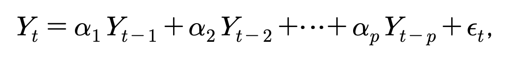 (정의) 만일 Y(t)가 임의 정수 p에 대하여 Y(t-1), Y(t-2), ... , Y(t-p)만의 선형결합 즉, t-p차 까지만 영향을 받는다면
