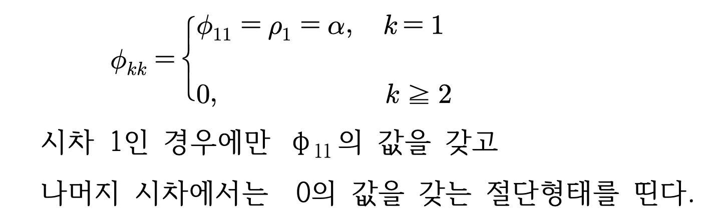 - 자기상관계수 이외에 모형을 식별하는 또 다른 하나의 수단이 부분자기상관계수이다.